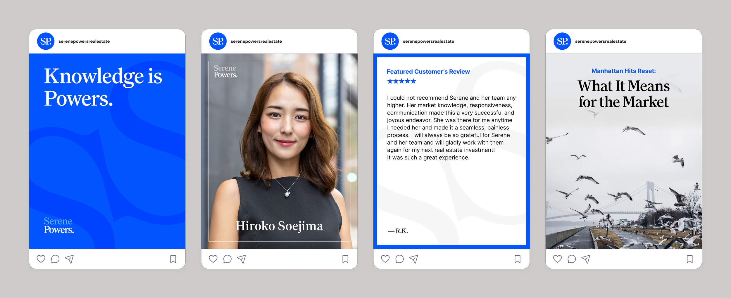 The logo concept plays on the contrast between ‘Serene’ and ‘Powers,’ reflecting the firm’s calm confidence and strong market expertise. Its clean design embodies a boutique brand that’s both approachable and assured.
